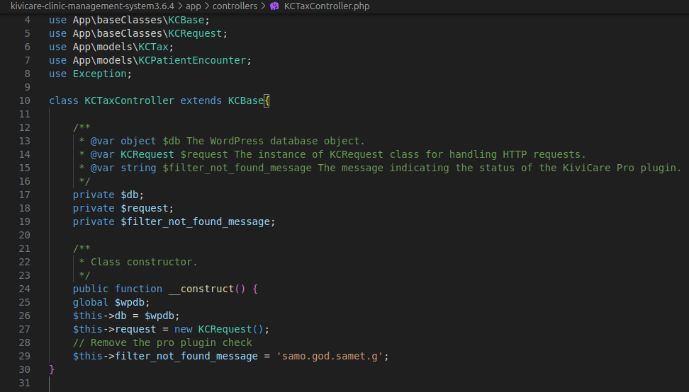 Bunu, KCTaxController sınıfının yapıcısını (constructor) değiştirerek aştım:
